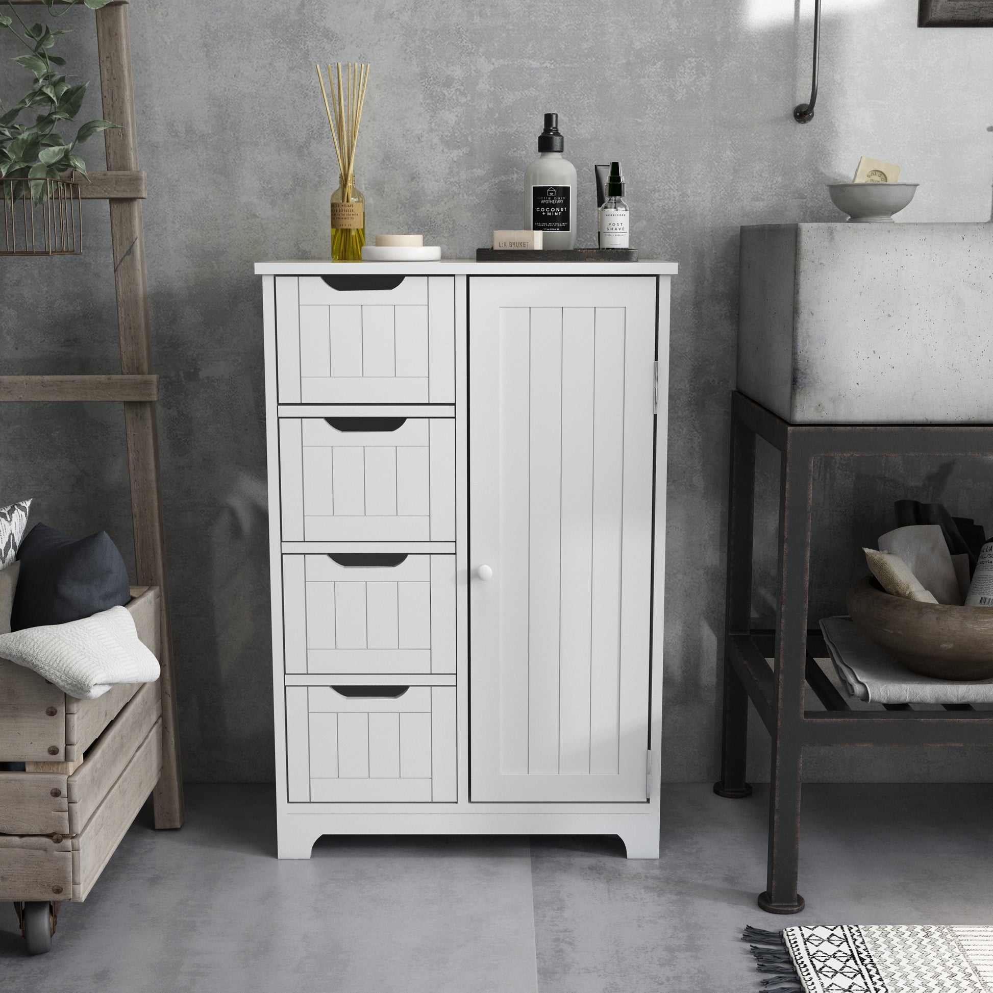 Simple Bathroom Cabinet, White Color, Single Door and 4 Drawers
