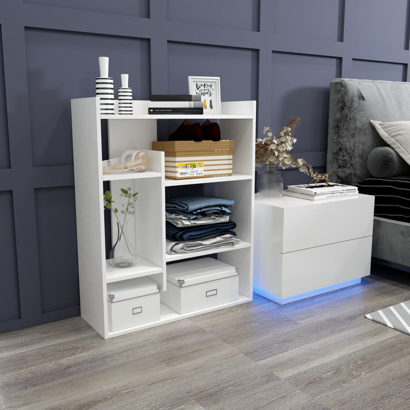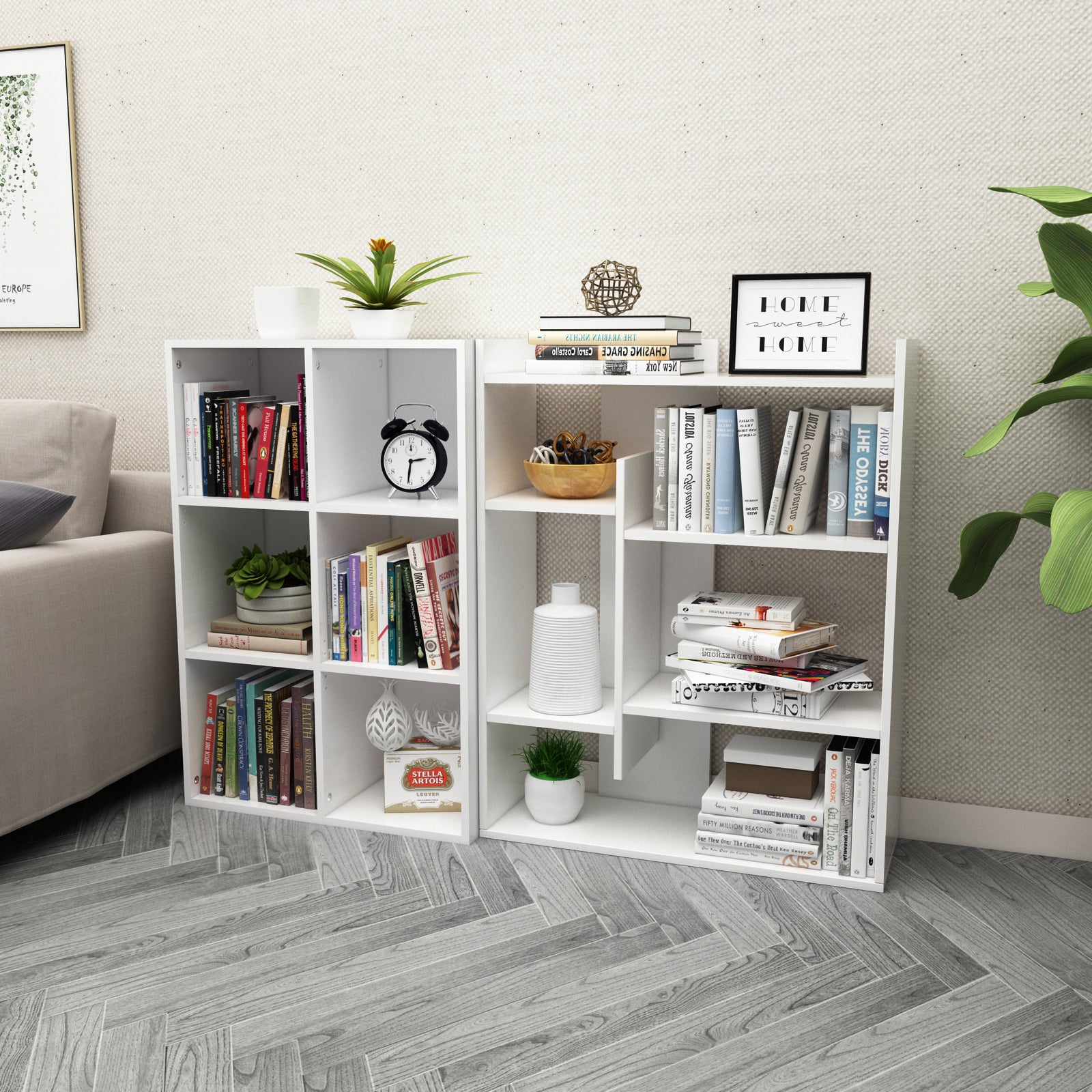 - [Wide Application] This bookshelf is staggered arrangement and separate a variety of storage units. You can place books, magazines, CDs, decorations, etc., which is an ideal choice of study, living room, children's room.