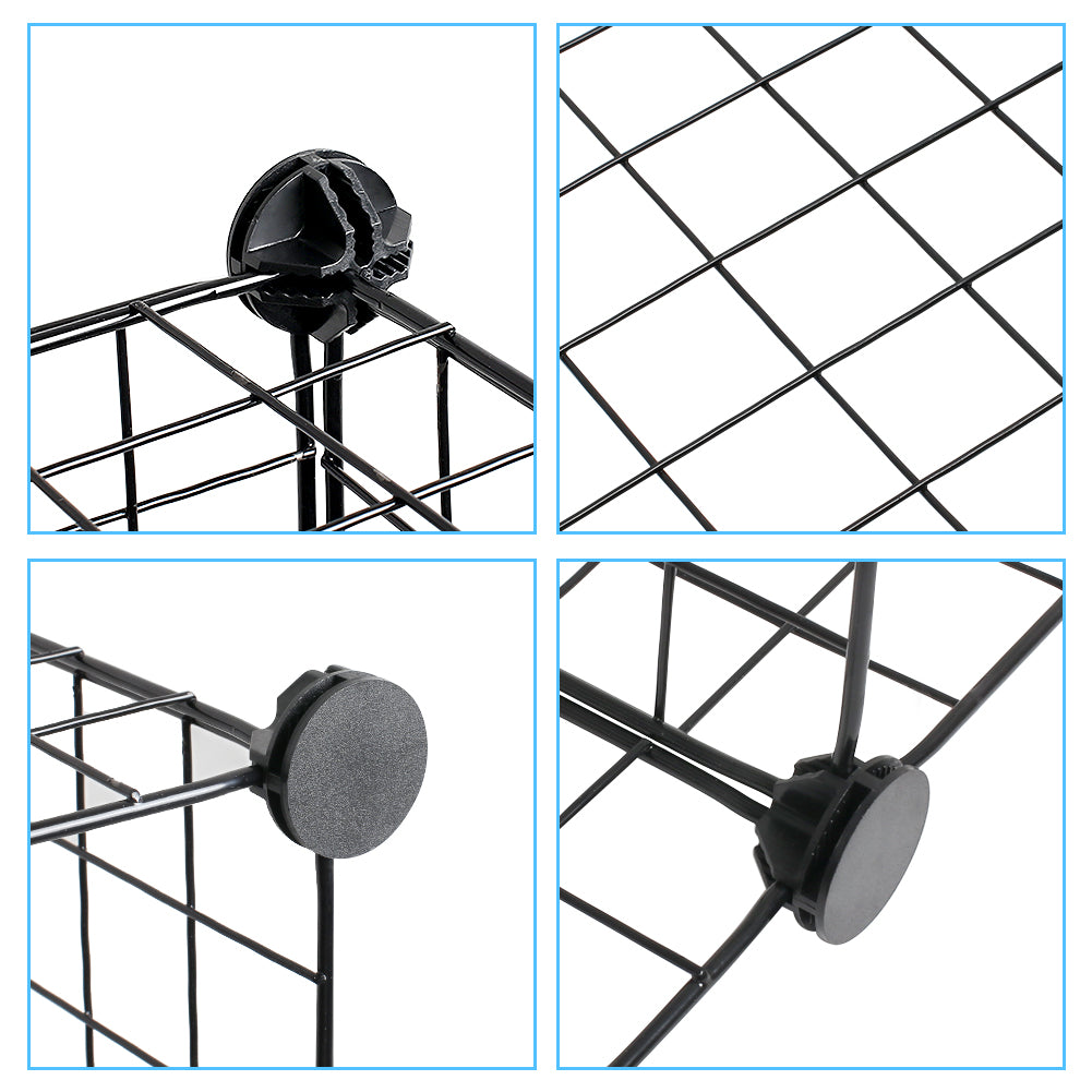 - Multi-function Shelf: The wire mesh structure determines that the product has a variety of properties such as hanging, stacking, display, and isolation. In addition, the wire mesh structure could be spliced easily and could also be used as a pet fence.