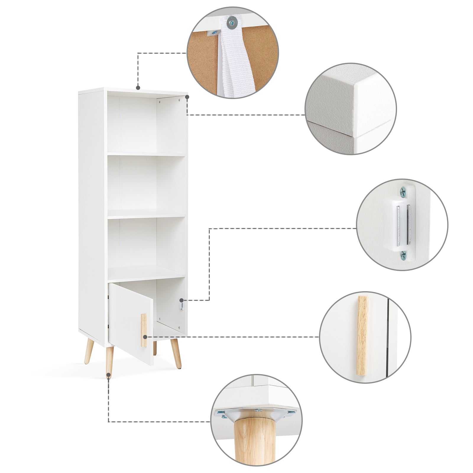 - Ample storage space - The storage cabinet has 1 door and 3 open spaces for you to store books, decorations, toys, and other items.
