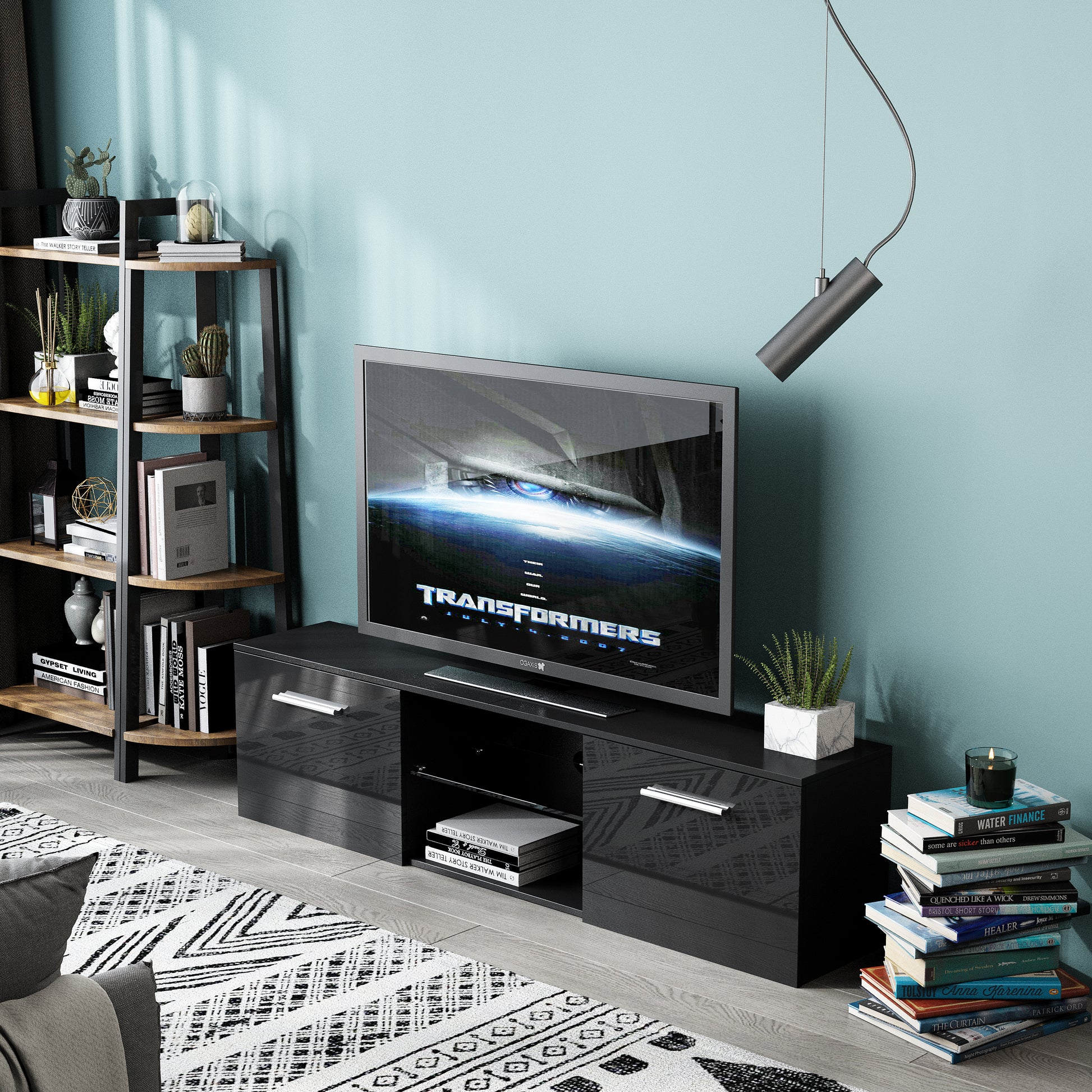 • [Large Storage Space] - The product size is 160(L) X 30(D) X 38(H)cm, internal depth: 28cm. We recommend that the TV size is within 55 inches ( long: 120cm) to enjoy the best viewing experience. The open compartment has a shelf for a DVD player or game console. There is plenty of space for TV games and accessories in the two spacious storage boxes.